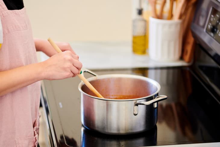 I personally love this thing because it’s oven-safe up to 600 degrees Fahrenheit, which means you can start a dish on the stovetop, and finish it under the broiler. (It’s also fine to use with metal tools and dishwasher-safe — if you’re Bill Gates and, you know, own a dishwasher.) The high walls and tight-fitting lid mean it’s good to go for everything from fall braises and boiling pasta to cooking fluffy rice, sauteing veggies, and more. (I’ve even roasted a small chicken in this thing.) My favorite thing to use this for, besides one-pot meals, is meal prepping. Since it holds up to 3.3 quarts, I just sear off some meat, add veggies, deglaze with stock and crushed tomatoes, cook a pack of noodles in the sauce, and voila — lunch for the next three days is served. The best part? I’m not left with a sink full of dishes, and if there’s anything stuck to the bottom of the pan (which there usually isn’t), I can just take a metal bench scraper to it without worrying about ruining the metal.