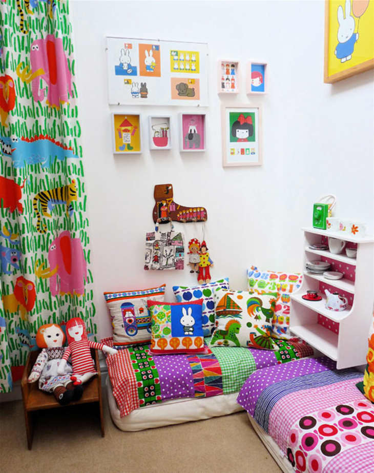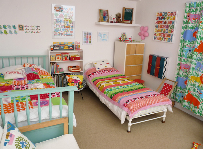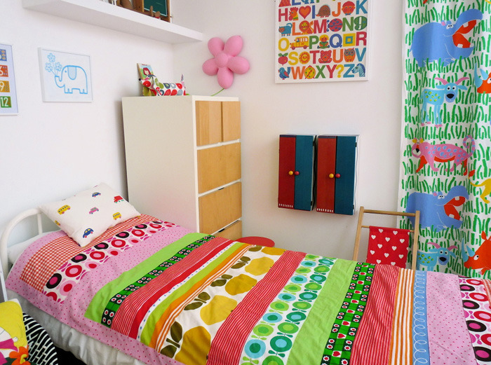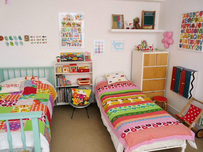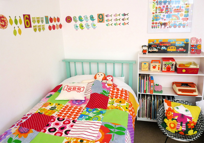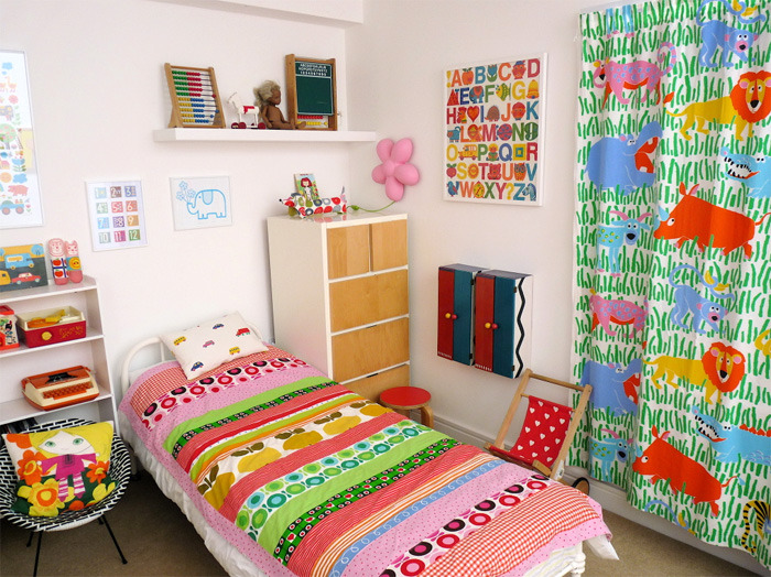 Chances are, you’ve probably seen Jane Foster’s work, and we’ve featured her many times ourselves. Her work whole-heartedly celebrates the bold shapes, patterns and colors from the 60’s and 70’s – one can’t help feel a bit nostaligic when admiring her designs. When it was time to create a space for her daughter Polly, she replicated this passion for vintage and retro design. The result is a space that is magical and vintage-inspired, but one that feels undoubtedly modern as well.
