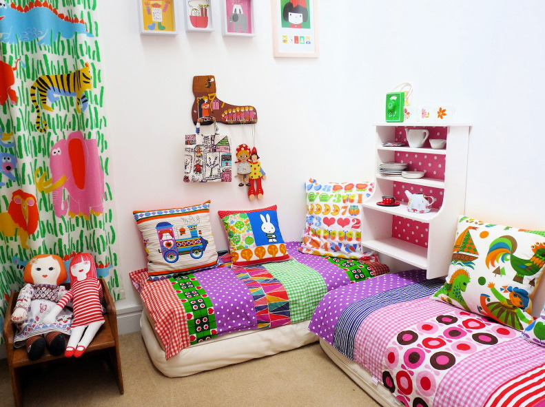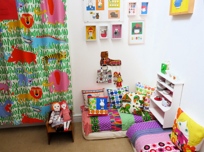 I really like her little cosy corner with lost of cushions – she tells me this is her favourite place in the room.