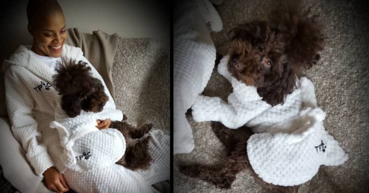 Buying matching items with your best friend is exciting. But buying something to match with your four-legged best friend? That is so much better! Our collective obsession with our pets has led to the mass creation of products catered toward pet owners. From things like slippers that look like your dog to doggy leggings, there’s basically an endless supply of things to buy for your pet. Now, you can purchase a robe for yourself and a tiny one for your dog.