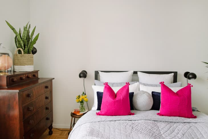 Minimalists: Take note of CB2’s Aldeia Black Blanket dotted with tiny white dots. I love this simple design so much that I’m giving it a pass on my preference for reversible quilts. It’s also available in white with black dots though, if you like lighter bedding.