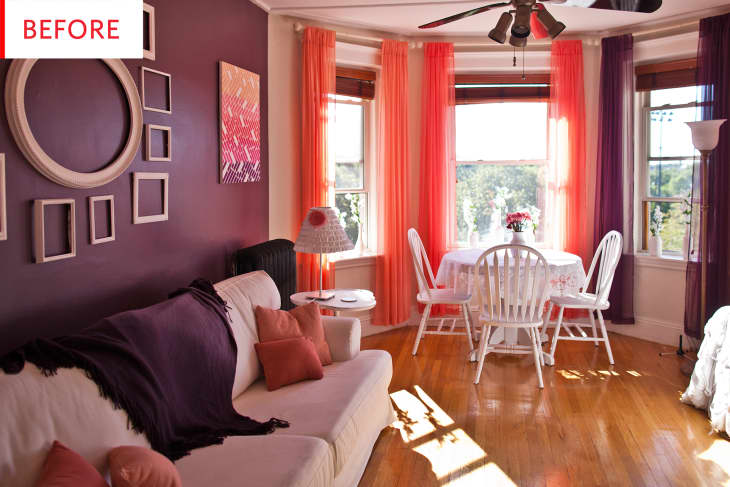 When I first moved into our tiny 440-square-foot apartment, I never imagined that I would eventually share the space with my husband (I hadn’t even met him yet!). So naturally, I turned it into the most girly space possible, complete with pink, peach, and purple walls. As a grad student all alone in a new city, I wanted the space to be really colorful and cheerful. I lovingly called it my “easter egg apartment.”
