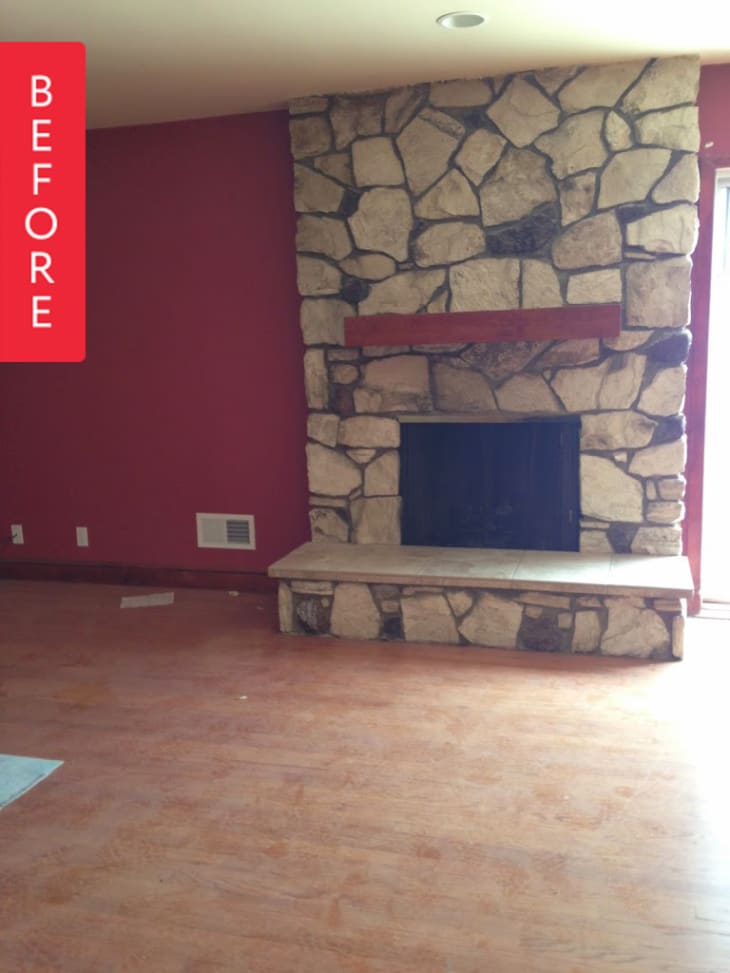 The size and scale of this fireplace is striking which means that changing its look has a big impact on this space. The homeowners also opted for a new wall paint color. Together, these changes give off a whole new vibe. Take a look:
