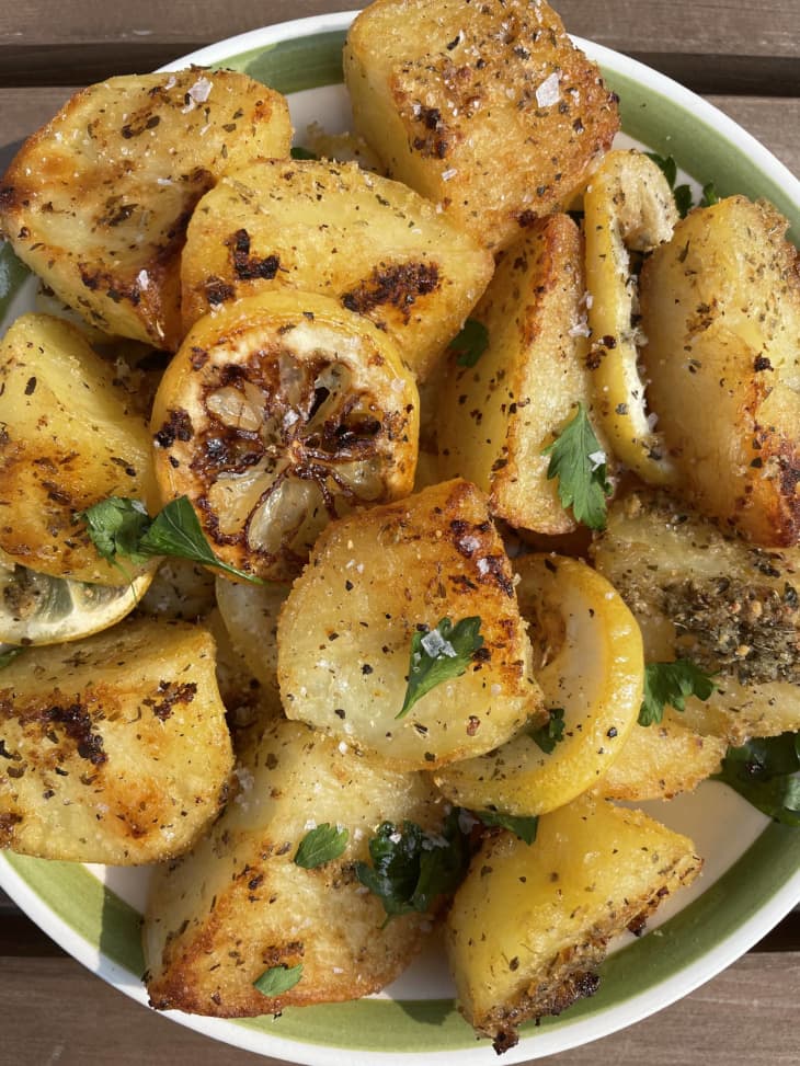 - If you want them crispier, cut down on the lemon. Adding the juice of one lemon and an entire sliced lemon adds a lot of flavor and a lot of moisture. All that moisture is going to hinder your chances of the potatoes getting super crispy, so if you’re aiming for a shatteringly crunchy exterior, pull back on the lemon a bit. If you’re still pining for that zesty flavor, you can finish your potatoes with lemon zest and/or lemon juice once they’re roasted.