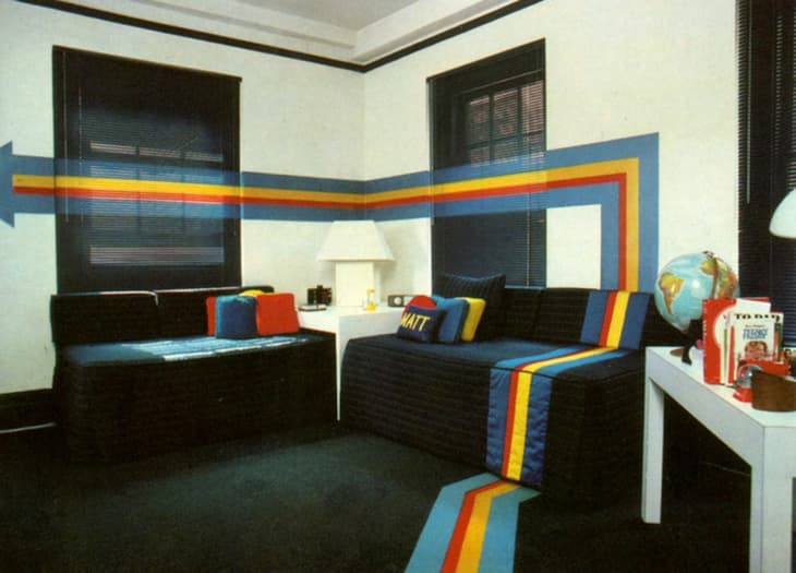 One of the perks of having a mother who was very into both garage sales and interior design was growing up in a house filled with wacky old design books from the 1960s and ’70s. In their pages, I was exposed to many strange and wonderful things, not least among them supergraphics, the crazy stripes and arcs and rainbows that covered every surface of a room, irrespective of walls or floors or furniture. As part of a series about strange old design trends (perhaps unjustly) relegated to the dustbin of history, we’re going to take a closer look at supergraphics—and some of the ways in which they might be coming back.