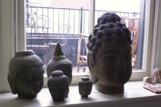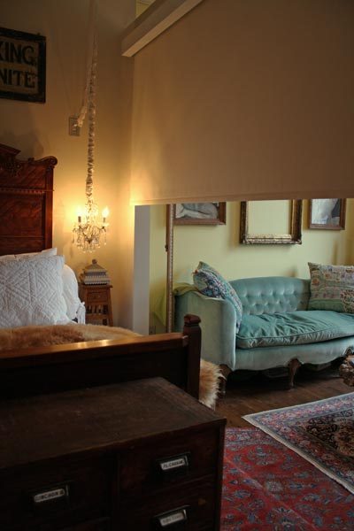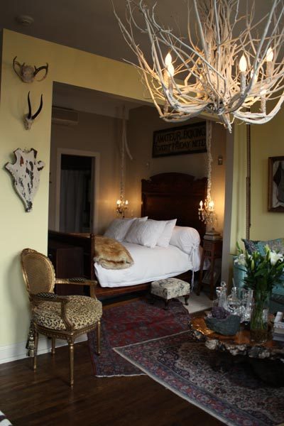 Suzi West has gone big by going small in her Short North studio condominium, which, in the living room alone, features show-stopping “branchelier,” a 3-foot-wide chandelier of white willow; an oversized zebra-print ottoman and an 8-foot-tall cupboard. Rife with European flourishes, Suzi’s home, a finalist in the 2008 Small Cool Home Contest mixes old-world chic with a cheeky charm: for instance, collection of apothecary bottles–including one that once housed chloroform–sits alongside a collection of Buddha heads; a sign reading “amateur boxing every Friday nite” hangs above her stately bed.