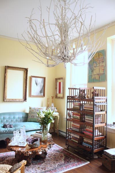 Resources: Collier West supplies much of the furniture, including the branchelier. Grandview Mercantile is another of Suzi’s favorite local shopping spots; Flea markets in locations as disparate as Paris, France and Springfield, Ohio also serve as resources for her home and store. Artwork in Suzi’s home includes pieces by Adam Brouillette, John Derian and Sarah Fairchild. The soft yellow walls in Suzi’s living room are painted with Sherwin Williams’ Lantern Light.