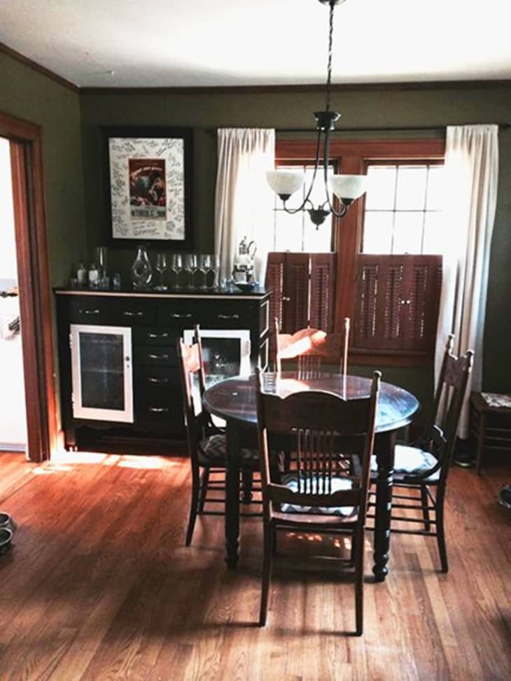 My husband and I moved into our little house in Des Moines (in a historic area called Beaverdale, full of houses from the ’30s) in July, and were very excited to start bringing some personality into the place! We liked the olive green walls of the living room and dining room, but realized shortly after hanging stuff up that we needed more color in the space.