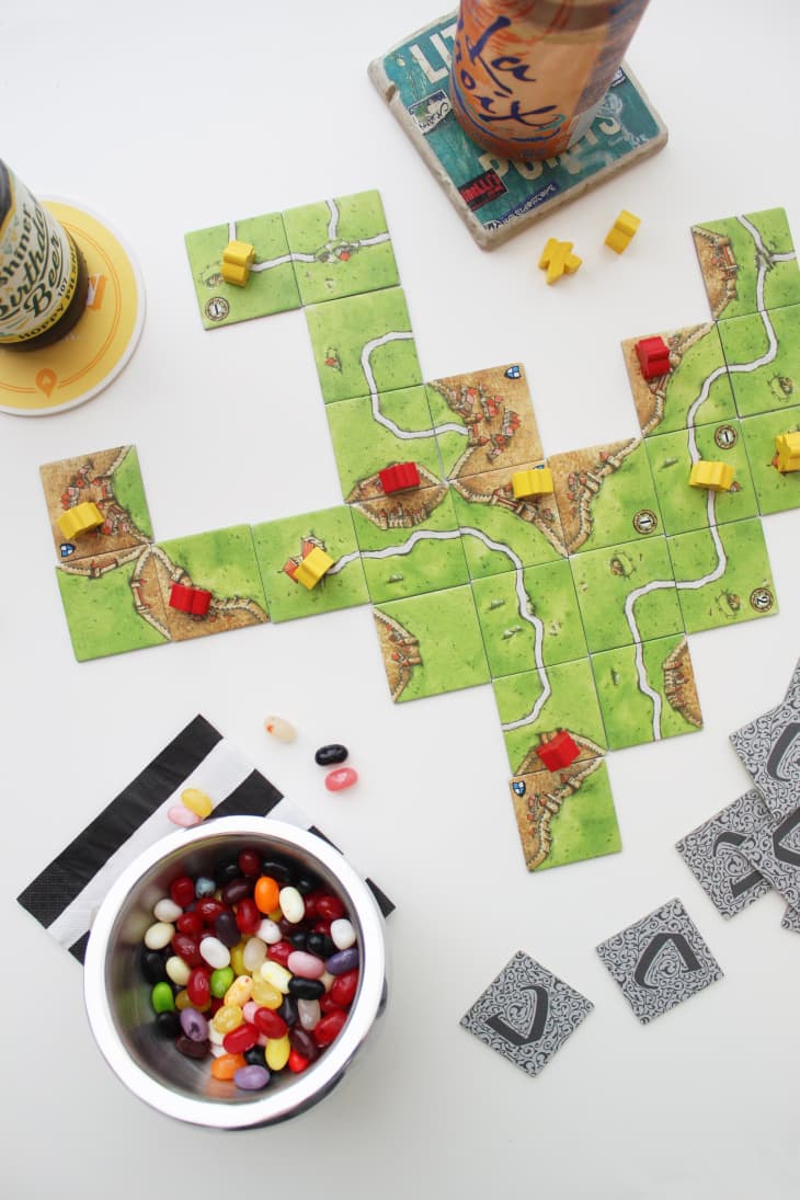 This one is my personal favorite for date night these days. In Carcassonne, each of you will take turns drawing and laying tiles like a puzzle, trying to complete cities, roads and other features in an area modeled after the South of France. You earn different amounts of points for each of the features you claim and complete.