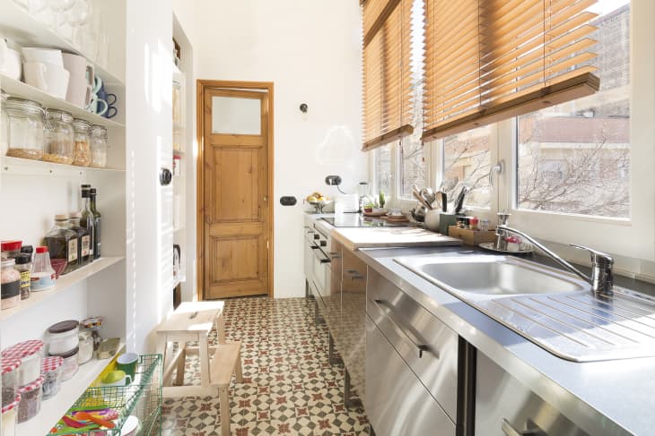 While you may do this because you are tight on space, Lewis says pretty much anywhere else is a much better option. She says to keep small appliances in the pantry or cabinet, or use a cart or another type of storage bin.
