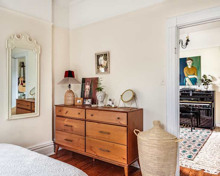If Bloch-Neal brings home a furnishing made of leather or suede, she cleans it with her own homemade concoction. “I swear by a spray made of two parts water and one part vinegar to help release lingering smells,” she says. “When it comes to furniture, a good all-purpose spray and a soft cloth will do wonders. A little care goes a long way in making your thrifted treasures feel fresh.”