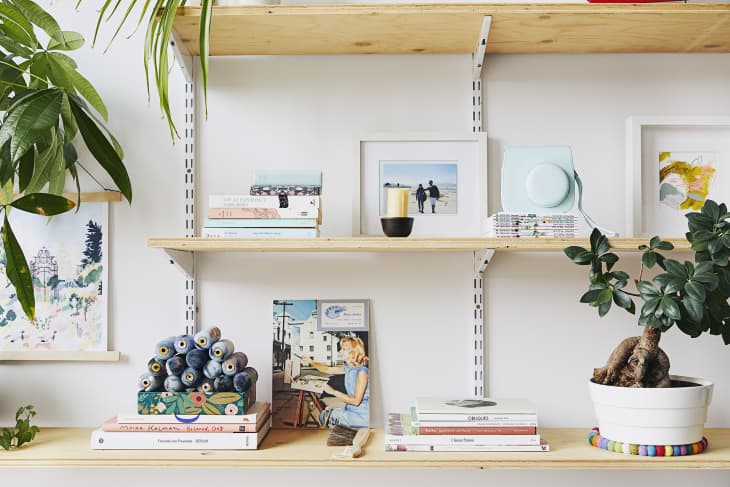 Instead, opt for closed storage, like matching opaque storage bins made from plastic, wood, or fabric.