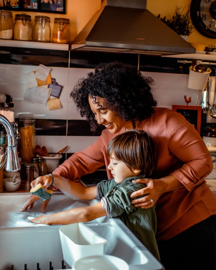 My favorite cleaning hack is Friday Family Clean. The four of us (two adults and two kids) turn on dance music, power clean for an hour, and end with popcorn and a movie night. There’s so much to feel good about here, and it prevents any bitterness associated with solo cleaning.