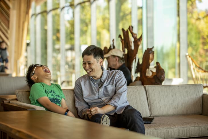 For example, the wood structures in the lodge, from the furniture to the ceiling, are a nod to a traditional park lodge, often a wood structure with wood finishes. But the design feels updated, modern, and ultimately, totally fresh. “You still have the smell of cedar and the warmth of the wood, but it’s taken to a new place in its geometry, application, and form.”