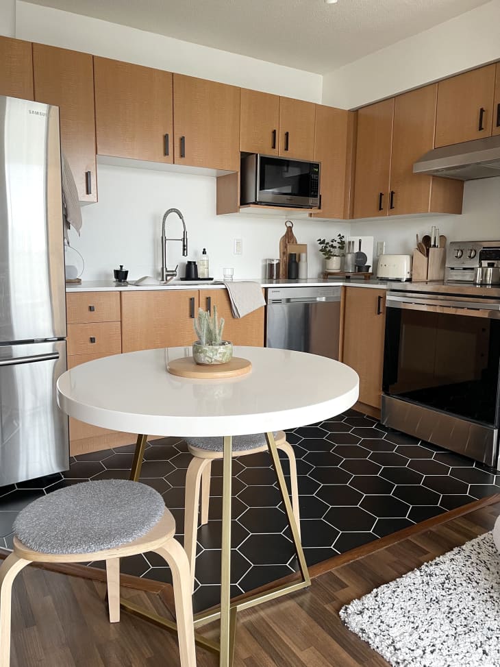 Barisky lives in a 400-square-foot apartment in Vancouver with her fiancé, Rob. “At 400 square feet, it was much smaller than anywhere else I had lived before,” she says. “The bedroom is literally just a room for a bed, and the closet is only three feet wide.” Having to work around the limited square footage was a challenge Barisky gladly accepted, though, and now she actually offers professional space-planning services and shares her ideas with over 90,000 followers on TikTok.