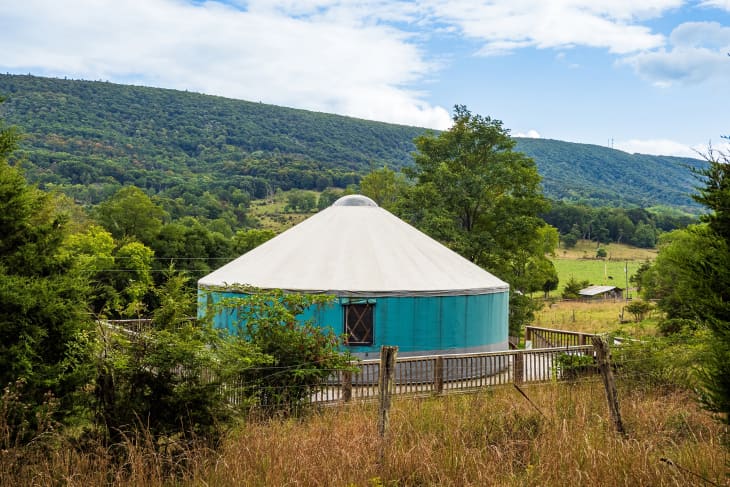 “There are many modern yurt companies that offer yurt kits that can easily be set up by the owner. All consist of a circular lattice wall, at least one entry door, multiple roof rafters inserted into a center ring, outer skins for the roof and side walls, optional insulation and windows, and a clear dome to cap off the structure,” she explains. Eggert adds that heavy blankets can additionally be used for insulation, and set-up requires around two to five people to help, depending on the size of the yurt. The best location for a yurt is “an even-grounded location,” according to her.