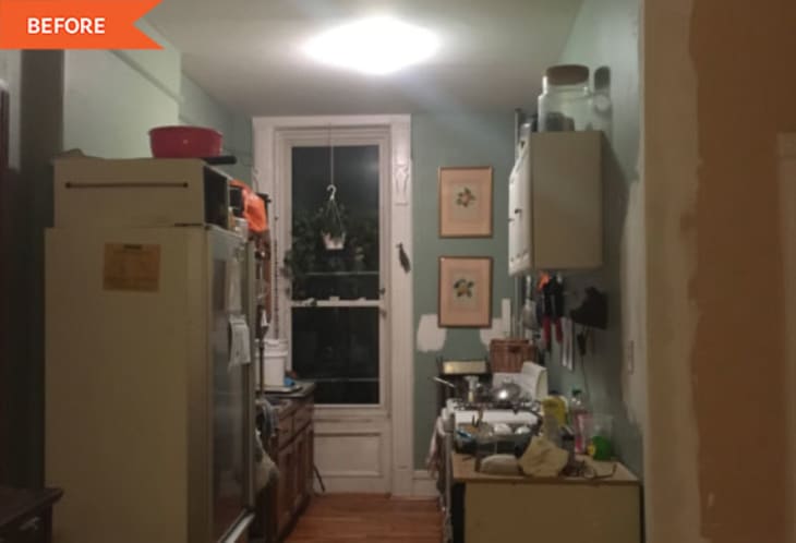 Lily Kesselman‘s kitchen renovation — which was “long, long overdue” — is a prime example. Before, Lily’s kitchen was cluttered, dark, and dated, to say the least. “This was terrible, below builder-grade kitchen,” she says. The cabinets were literally falling apart, the walls had paint swatches all over them, and the narrow layout wasn’t functional at all. According to Lily, the space wasn’t event originally designed to be kitchen and was previously used as a bedroom.