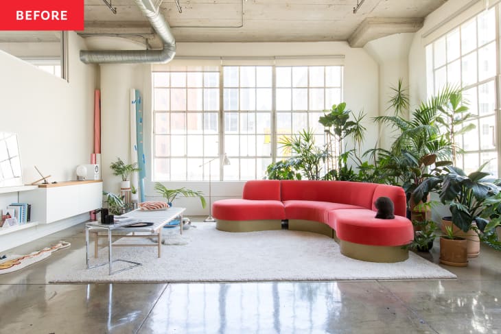Puno Puno and Daniel Chin Yee‘s LA loft is so cool, Apartment Therapy has actually toured it twice. Upon first visit, the couple had only lived in the loft for six months and had set it up as shop for both living and working on their shared business. The space was anchored with a bright red sectional, lots of plants, and even a working photography “studio” of sorts. Fast-forward five years, and the curvy sectional has been reupholstered in a creamy white, the plants have grown exponentially, and the duo has added a new member to the family (baby Frankie)! Aside from the addition of another human to their home, possibly the biggest change they’ve made to their loft is painting the concrete floors white.
