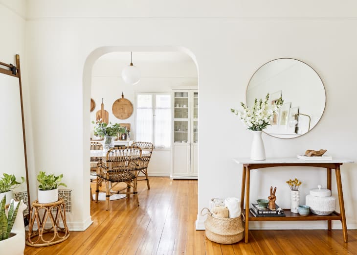 If you’re into neutral, organic interior design, this is a clever way to introduce color and texture into your kitchen. This could be very renter-friendly, too, if you decide to use Command hooks instead of nails. After all, you likely buy certain serving boards because of their beautiful sizes and shapes, so why not put them on display?