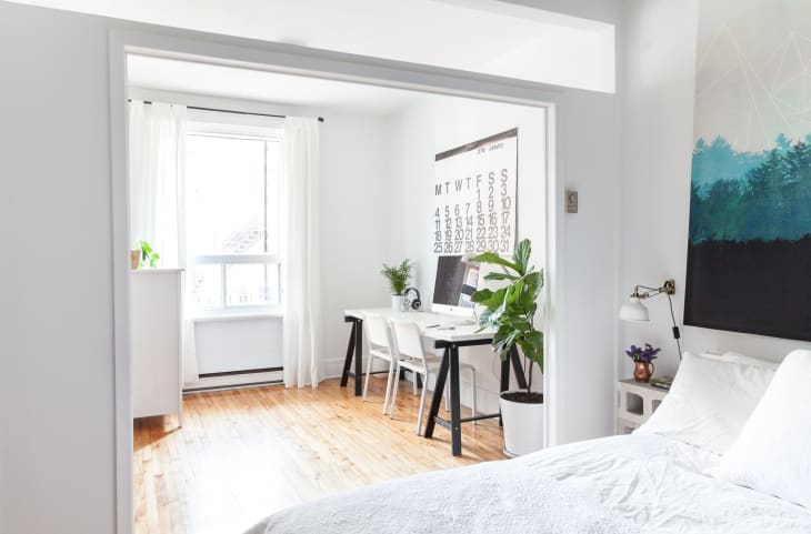 If you have no choice but to work in the same space you sleep—like, if you live in a studio apartment or there’s simply not enough room in your home for everyone to set up a workspace—there’s a solution: establish boundaries. One way to do that is to make your bed every day before starting work, says pro home organizer Ben Soreff. Think of it as a physical way to communicate to your brain that you’re in work mode, not rest mode.